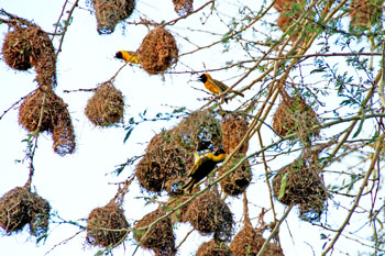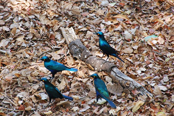 ↑在克魯格吃中飯時,戶外滿是這種身披金藍羽毛的藍鵲,以及鮮黃色的「黑頭群棲織布鳥」。為了近距離取鏡,吃完飽肥後的我又溜回餐廳,拿了一些小麵包塊… 於是我就像童話中的白雪公主,腳邊滿是唱著歌兒的小鳥。﹙好奇怪的比喻﹚