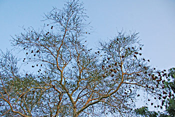 ↑左&中圖:這棵大樹是一群織布鳥的大型公寓,我們看的目瞪口呆;一是樹上數以千計的鳥群,一是地上一坨坨的白白鳥糞。由於上廁所一定要經過此樹,所以都會害怕的低著頭。 ↑右圖:這是離開園區時才發現…「都沒有拍一張有克魯格字樣的紀念照!」 於是趕緊在一個木牌前留影;不過這位黑人朋友並不是我們要求合影的,而是搶拍時他來不及離開。