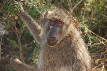 ↑Chacma Baboon 狒狒 在保護區裡很常見,和猴子最大的分辨在於那長長的臉。小猴們鬧在一起,很是受到女生們的歡迎。每每看到路上有整群的狒狒逗留時,一定要逗留觀賞。