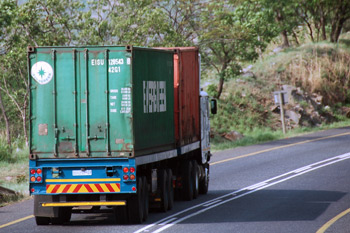 ↑左圖:海外又看見熟悉的身影,特別是在這個遙遠的非洲。後頭拖著一只40呎櫃,前面是20呎櫃…這在台灣的話,必會引來一陣譁然。