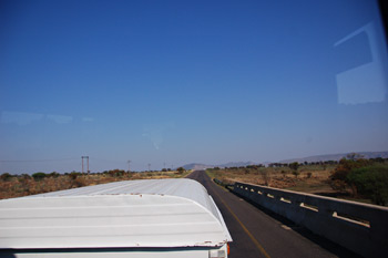 ↑右圖:離境前往機場時最後一拍,坐在小巴的最後位置,對著車後公路抓取藍天。左下角白色的蓋子是加掛的行李廂。
