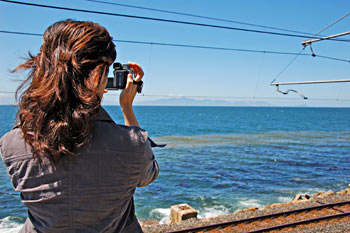 ↑有外國人奮力的划著小皮艇,想想這個海域可能有大白鯊,不禁捏了一把冷汗。因為相對位置的關係,好像人力小艇戰勝馬達大船,使得右圖看起來頗為有趣。