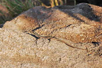 ↑桌山上最想看到啼兔﹙Rock Hyrax﹚,但是只拍到這種蜥蜴。牠曬著舒服的太陽,也不管我為了取景而離牠愈來愈近。