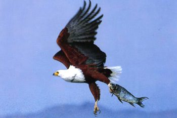 ↑左圖:很強吧?連魚鷹捕魚也拍得到…可惜這是掃描明信片得來的﹙Photograph Gerald hoberman﹚。 ↑中圖:美麗的鴿子前胸,有著像紅色閃電的環狀花紋。↑右圖:旅館裡飼養的孔雀開了屏,一群人不禁要驚嘆。